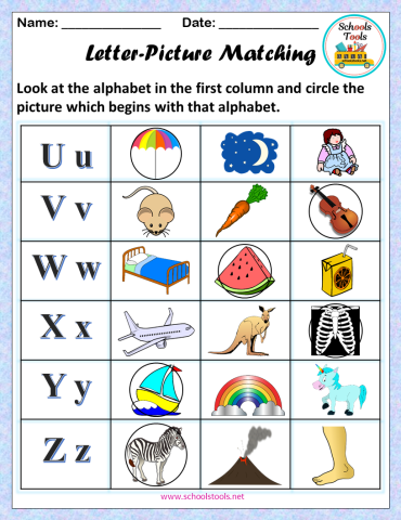 This "Letter-Picture Matching" worksheets are great as they help your kids to master recognizing the beginning sounds of the pictures. Alphabetic recognition is one of the very first skills Kids learn while they are beginning readers.